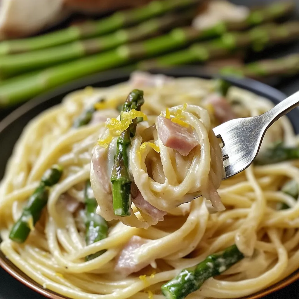 Diese cremige Spargel-Pasta ist mein liebster Frühlingsbegleiter, der feine grüne Spargel, der zarte Hähnchenschinken und die frische Zitronennote verschmelzen zu einem herrlichen Gericht, das in nur 20 Minuten auf dem Tisch steht.